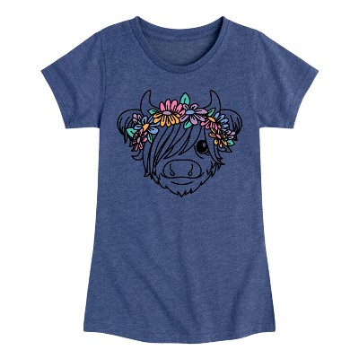 Girls' - Instant Message - Highland Cow Flower Crown Fitted Short Sleeve Graphic T-Shirt