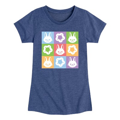 Girls' - Instant Message - Bunny Flower Grid Fitted Short Sleeve Graphic T-Shirt