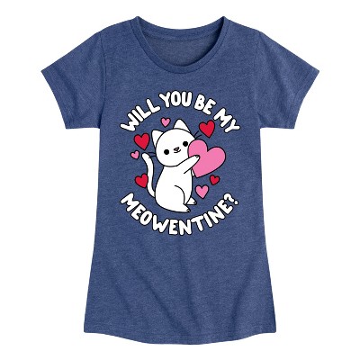 Girls' - Instant Message - Valentine's Day Be My Meowentine Fitted Short Sleeve Graphic T-Shirt