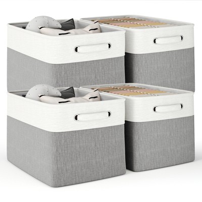 Aoibox Fabric Canvas Storage Bins Organizer Foldable Sturdy Baskets with Handles for Clothes and Home Organization 4 Pack