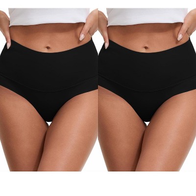 INSPIRE CHIC Women's Mid Waist Tummy Control Full Coverage Briefs Breathable and Comfortable Panties 2 Packs