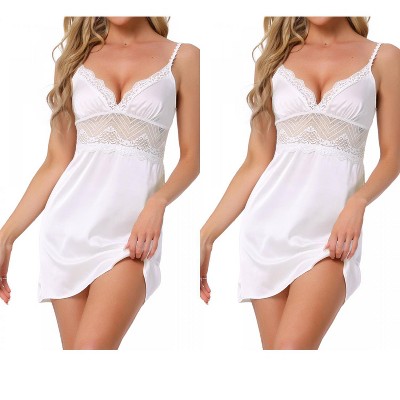 INSPIRE CHIC Women's 2 Pcs Satin Pajama Dress V-Neck Lace Cami Chemise Mini Satin Nightgown