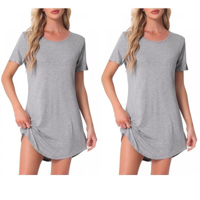 INSPIRE CHIC Women's 2 Pcs Curved-Hem Crew-Neck Striped Short-Sleeve Tee Dress Sleepshirt