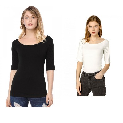 Allegra K Women's Half Sleeves Scoop Neck Fitted Layering Soft T-Shirt 2 Packs