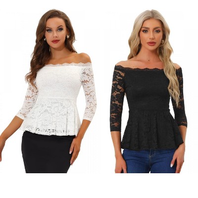 Allegra K Women's 3/4 Sleeve Round Neck Smocked Waist Peplum Blouse 2 Packs