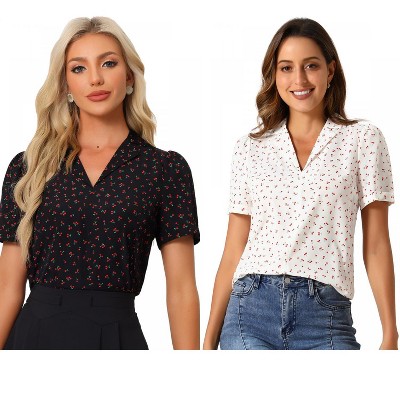 INSPIRE CHIC Women's Short Sleeve Casual V Neck Print Notch Lapel Collar Summer Blouses 2 Packs