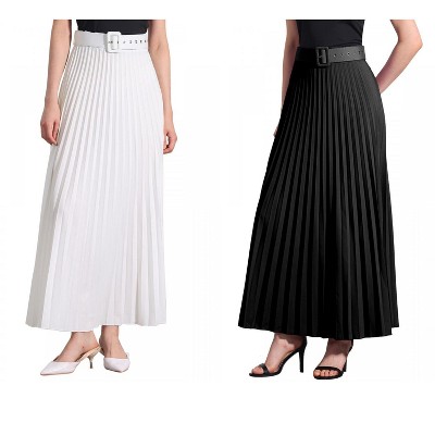 INSPIRE CHIC Women's Flowy Pleated Elastic High Waist with Belt A-line Skirt 2 Packs
