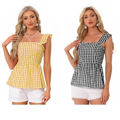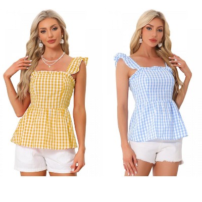 INSPIRE CHIC Women's 3/4 Sleeve Belted Elegant Business Work Peplum Top 2 Packs