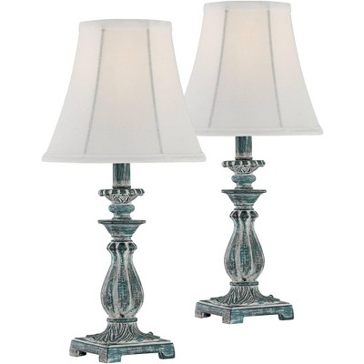 Regency Hill Cali Traditional Accent Table Lamps 19" High Set of 2 Antique Blue White Bell Shade for Bedroom Living Room Bedside Nightstand Office
