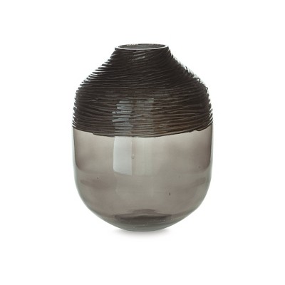 HomeRoots 11" Charcoal And Orange Ombre Round Glass Table Vase