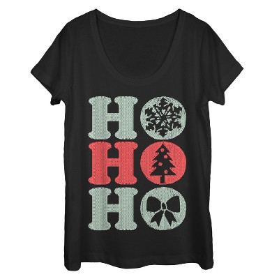 Women's CHIN UP Christmas Ho Ho Ho Stitch Print Scoop Neck