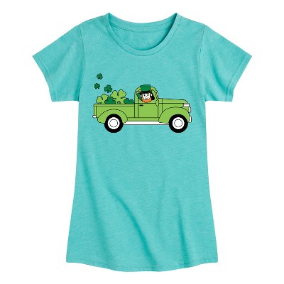 Girls' - Instant Message - St. Patrick's Day Leprechaun Truck Delivering Luck Fitted Short Sleeve Graphic T-Shirt