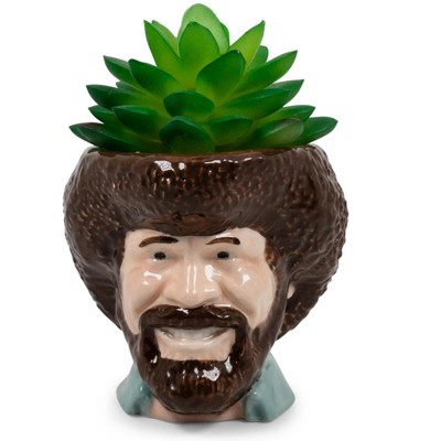 Surreal Entertainment Bob Ross Mini Ceramic Planter with Artificial Succulent Plant