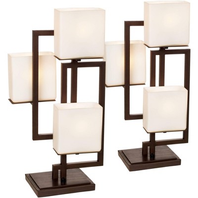 Possini Euro Design 24" High Geometric Small Modern Table Lamps Set of 2 Brown Roman Bronze Finish Metal Living Room Bedroom Bedside Nightstand House