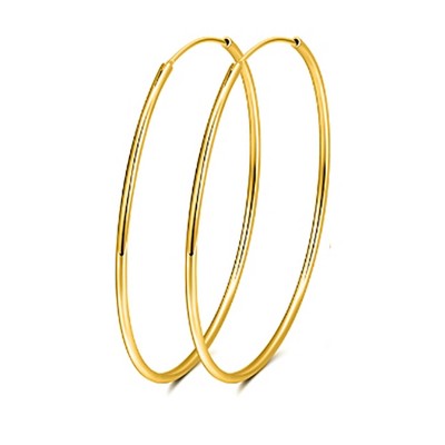 Yellow Gold Endless Hoop Earrings, Thin, Small, Flexible, Continuous Real Pure Gold Hoops