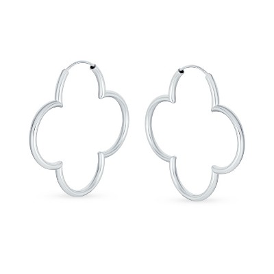 Bling Jewelry Simple Large Thin Tube Endless Clover Flower Shaped Hoop Earrings Sterling Silver 1.5 Inch