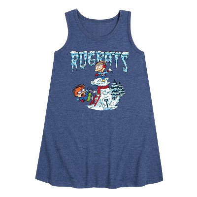 Girls' - Rugrats - Snowball Fight Graphic Sleeveless Aline Dress