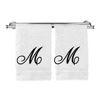 BC BARE COTTON Monogrammed Hand Towel, 100% Turkish Cotton - Set of 2 - White - Black Script