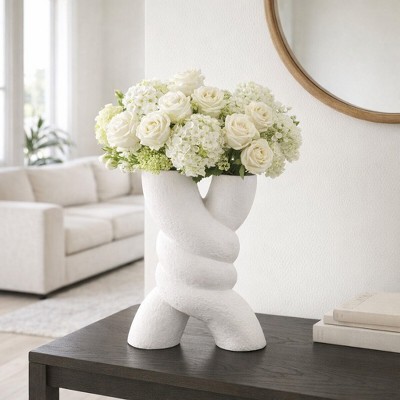 Modern Terracotta Vase - Twisted Design - Contemporary Home, Office, Bedroom & Living Room Decor -Centerpiece for Floral Arrangements - 14" White