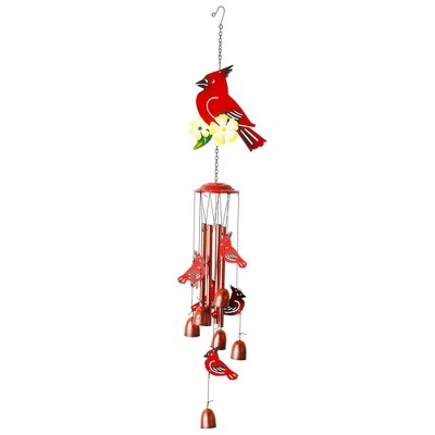 G128 Cardinal Wind Chimes - Red Metal Outdoor Decor, 32 In