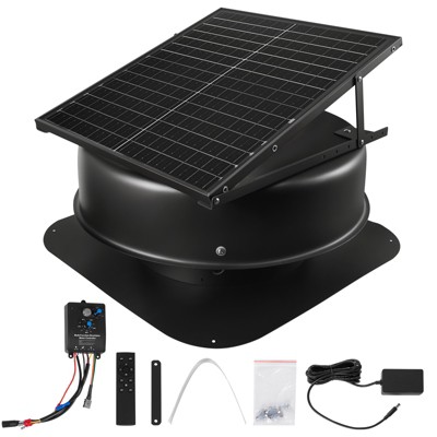 VEVOR Roof Attic Exhaust Fan, 50W Smart Solar Roof Ventilation Fan with Thermostat, 3000 CFM Airflow Built-in Smoke Sensor ,Black