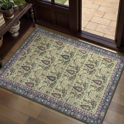 2x3 Small Washable Entry Rug Vintage Boho Purple Floral Non Slip Low Pile