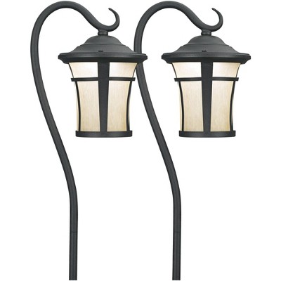 John Timberland Carriage 23" High Mission Outdoor Landscape Path Lights Porch House Exterior Set of 2 LED Bulb Textured Black Finish Metal Glass Shade