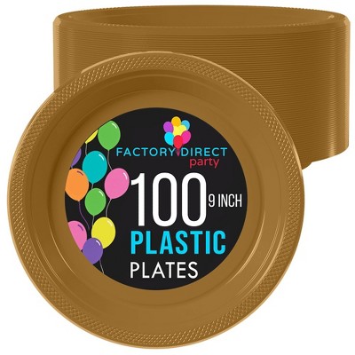Smarty Had A Party 10.25" Clear w/ Gold Edge Rim Plastic Dinner Plates - 120 pcs