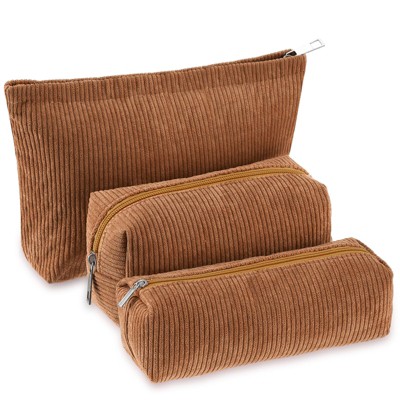 Narwey 3 Pcs Makeup Bag Set for Women Corduroy Cosmetic Pouch Aesthetic Smile Travel Toiletry