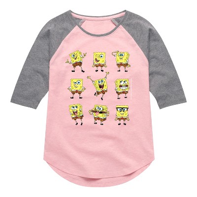 Girls' - SpongeBob SquarePants - Spongebob Faces Grid Shirt Tail Raglan Graphic T-shirt