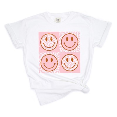 Simply Sage Market Women's Checkered Smiley Face Flowers Short Sleeve Garment Dyed Tee