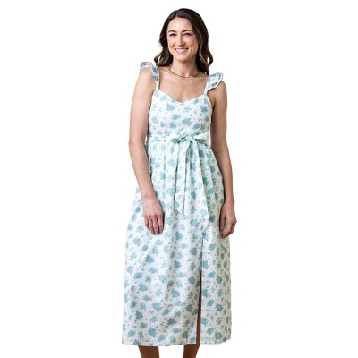 Miss Circle Jacinda Green Floral Print Ruched Breast Linen Midi Dress