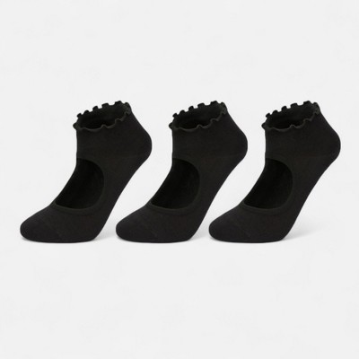Anna-Kaci Women's 3-Pack Non-Slip Ballet Cut Ankle Socks with Ruffled Trim and Grip Soles for Yoga or Daily Wear