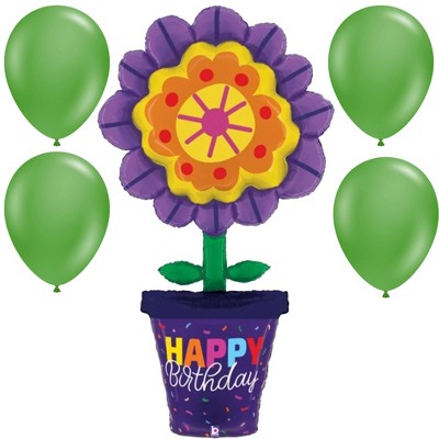 LoonBalloon 63 Inch Giant Flower Pot Birthday Balloon with 4 latex balloons- Festive & Unique