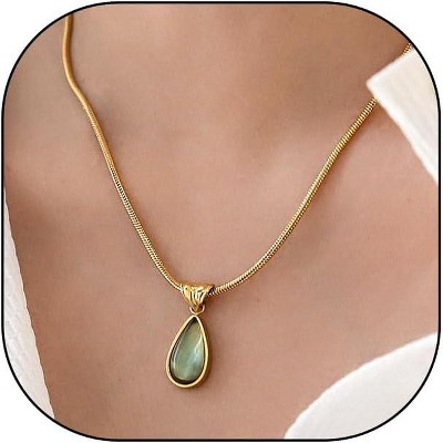 Gold Teardrop Acrylic Necklace – Bohemian Snake Chain Jewelry for Women