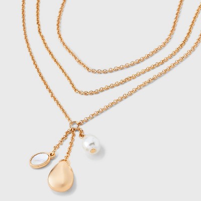 Organic Drop Multi-Strand Necklace - A New Day™ Gold: Nickel-Free Metal, Lobster Claw Clasp, 18" Length