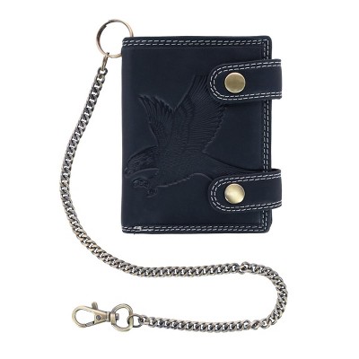 CTM Men's Pebble Grain Leather RFID Long Trifold Trucker Chain Wallet