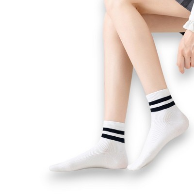 Anna-Kaci Women's 3-Pair Antibacterial and Breathable Ribbed Ankle Socks with Double Stripe Cuffs