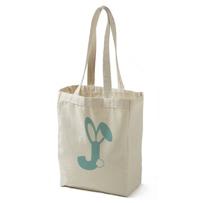 Personalization Mall Bunny Monogram Canvas Tote Bags, Blue