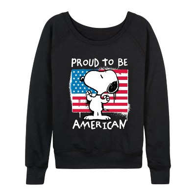 Women's - Peanuts - 50s Snoopy Stars Lightweight French Terry Wide Neck Long Sleeve Graphic Shirt