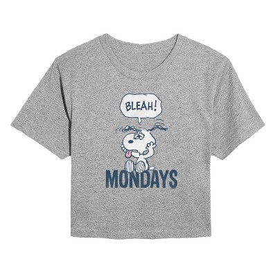 Women's - Peanuts - Bleah Mondays Snoopy -Juniors Cropped Graphic T-Shirt Cropped Graphic T-Shirt