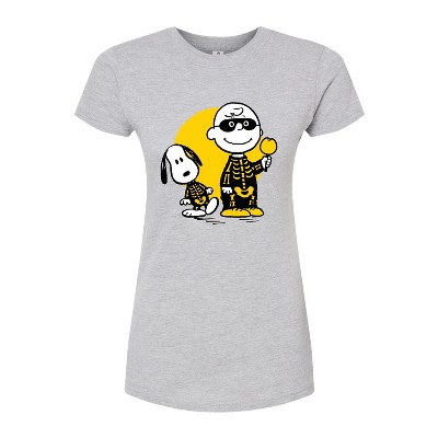 Women's - Peanuts - Charlie And Snoopy Skeleton Fitted Graphic T-Shirt