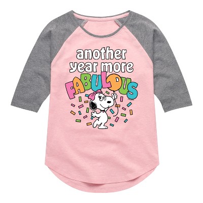 Girls' - Peanuts - Snoopy and Friends Birthday Shirt Tail Raglan Graphic T-shirt