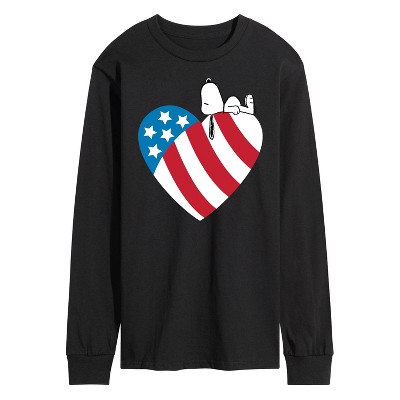 Men's - Peanuts - Snoopy On Flag Heart Long Sleeve Graphic T-Shirt