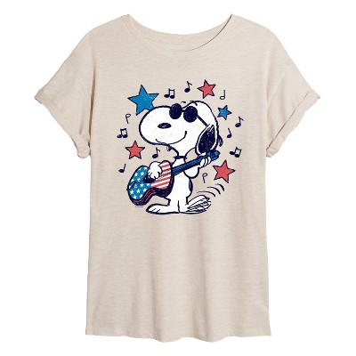 Women's - Peanuts - Snoopy Americana Guitar Oversized Graphic T-Shirt