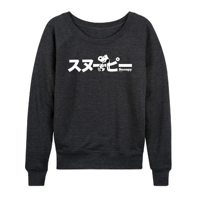 Women's - Peanuts - Snoopy Lightweight French Terry Wide Neck Long Sleeve Graphic Shirt