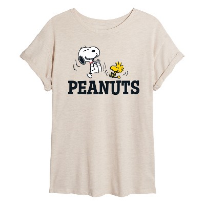 Women's - Peanuts - Snoopy And Woodstock Oversized Graphic T-Shirt