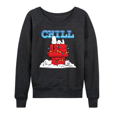 Women's - Peanuts - Snoopy Chill Lightweight French Terry Wide Neck Long Sleeve Graphic Shirt