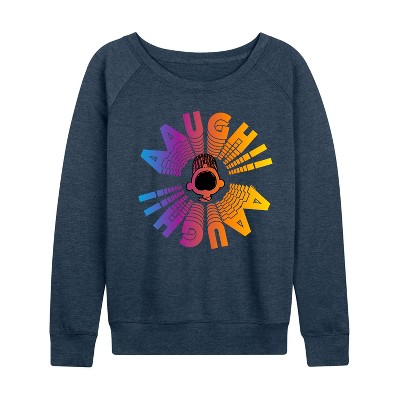 Women's - Peanuts - Snoopy Chill Lightweight French Terry Wide Neck Long Sleeve Graphic Shirt