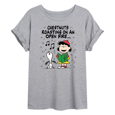 Women's - Peanuts - Snoopy and Lucy Chestnuts Roasting Carol Oversized Graphic T-Shirt